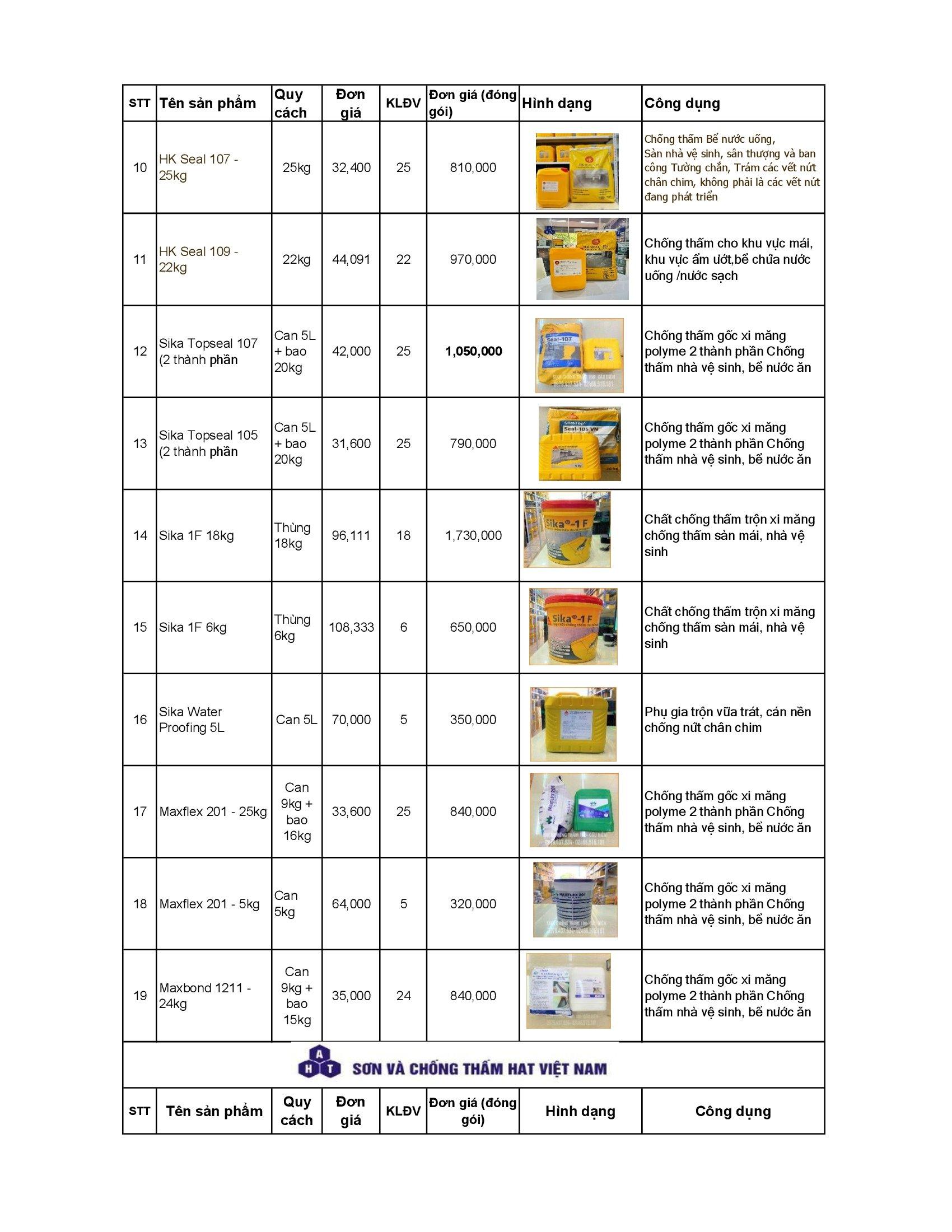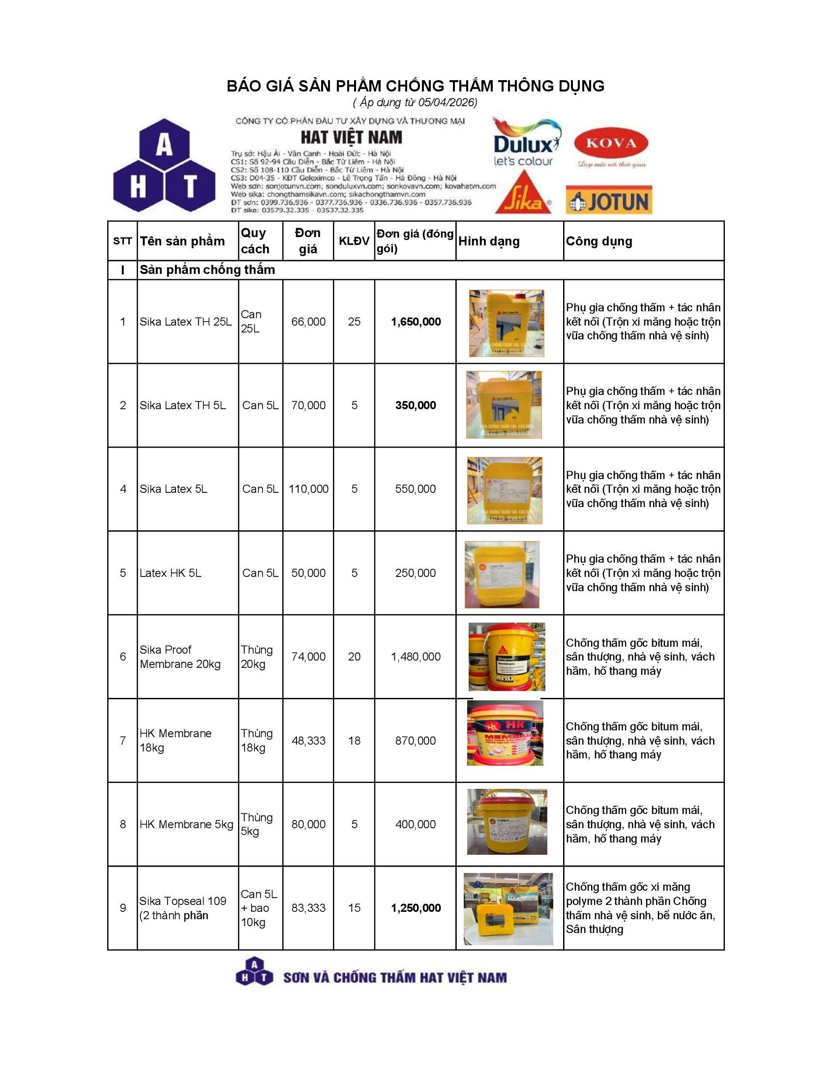 Sika chống thấm HAT Việt Nam xin được gửi tới Quý khách hàng bảng báo giá sika chống thấm dành cho khách hàng mua lẻ cập nhật mới nhất năm 2026