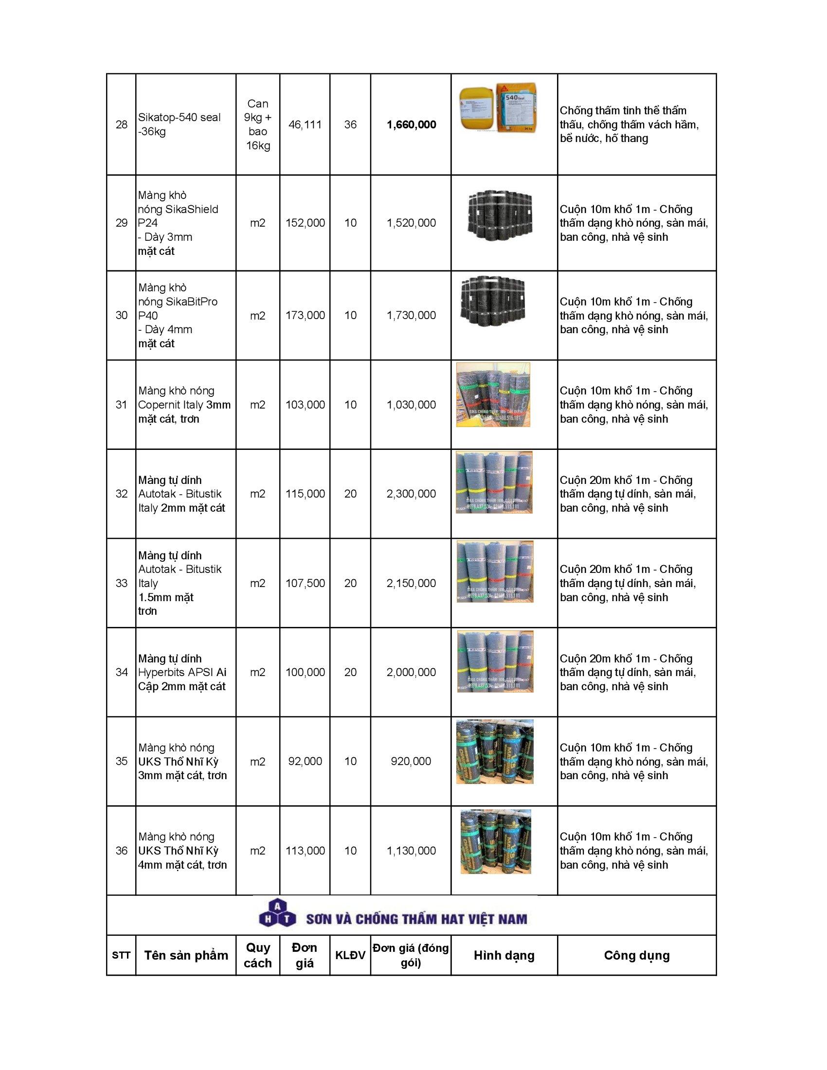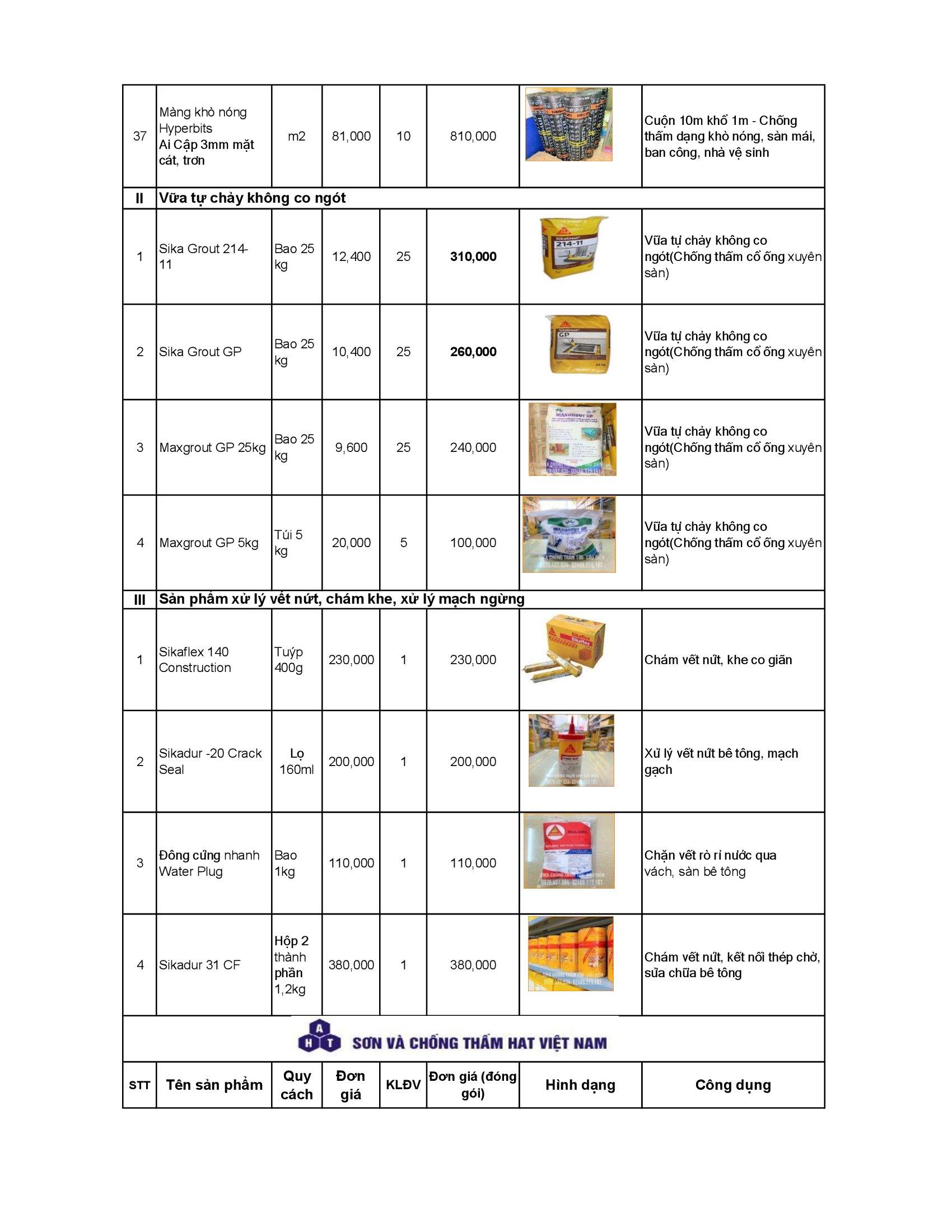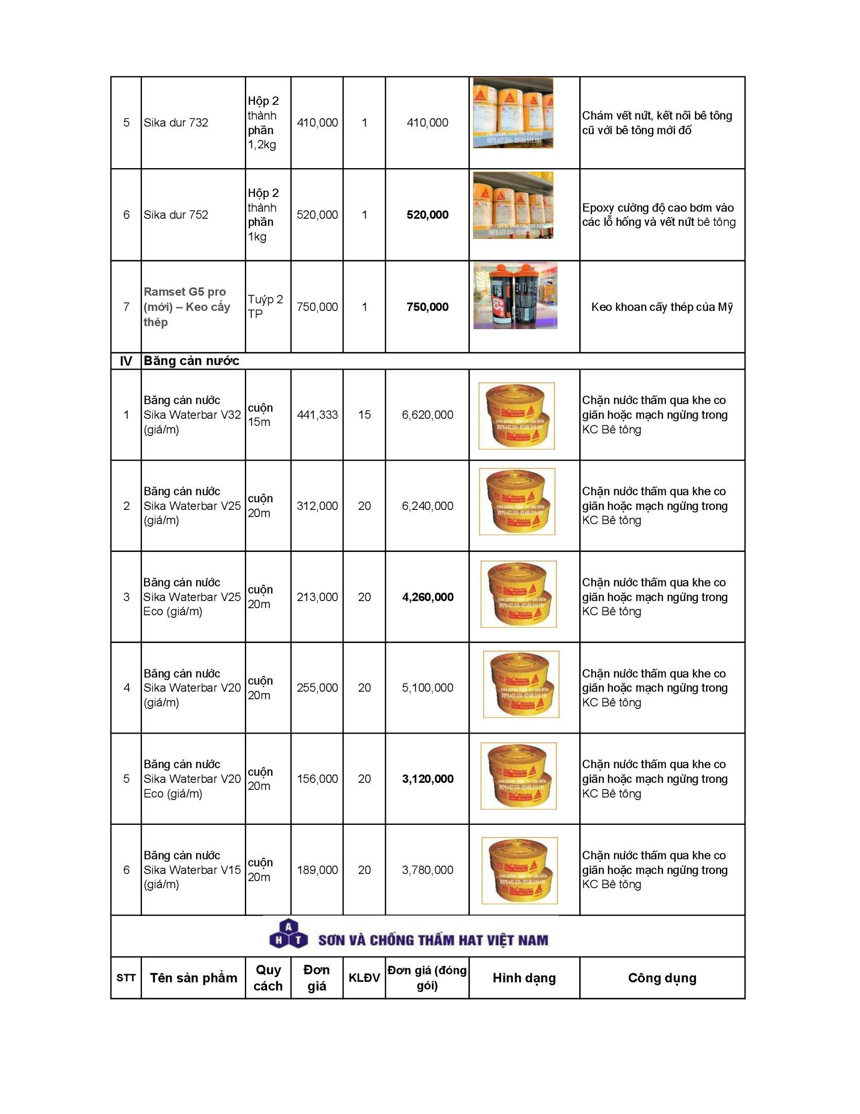 Bảng giá sika chống thấm mới nhất tháng 4.2026. pdf
